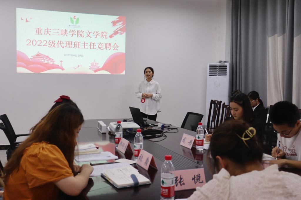 为搭建好辅导员与新生间沟通的桥梁,提高2022级新生班级凝聚力,我院于6月29日下午在博学楼3栋418举行了2022级代班竞聘会。bw必威西汉姆联官网学工办主任兼团总支书记熊维娟、2020级辅导员张悦、第九届主席团成员以及候选人参加了本次大会。