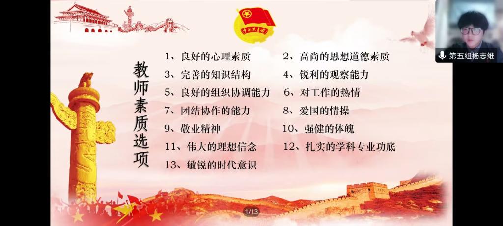 本次破冰活动主要以“教师资格模拟见面会”的形式开展。主持人提供50分钟的时间,让各小组就教师素养进行讨论选择。通过激烈的讨论,各小组进行了完整、精彩的汇报演讲,不仅展现了学员们青春昂扬的面貌,更让教师素质素养深入人心。最后,学生会主席团成员龙丹进行总结发言,指出了小组分享时存在的问题,并鼓励学员们再接再厉、勇攀高峰,希望每个学员走上职场时能够更加从容、自信。