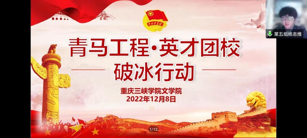 为了提高学员的团队协作能力,加强学员之间的沟通与交流,我院于2022年12月8日在线上成功举办第六期“青马工程·英才团校”破冰行动。bw必威西汉姆联官网主席团全体成员、各班优秀团员代表、团学联部分学生骨干及工作人员参加此次会议。本次会议由杨志维主持。