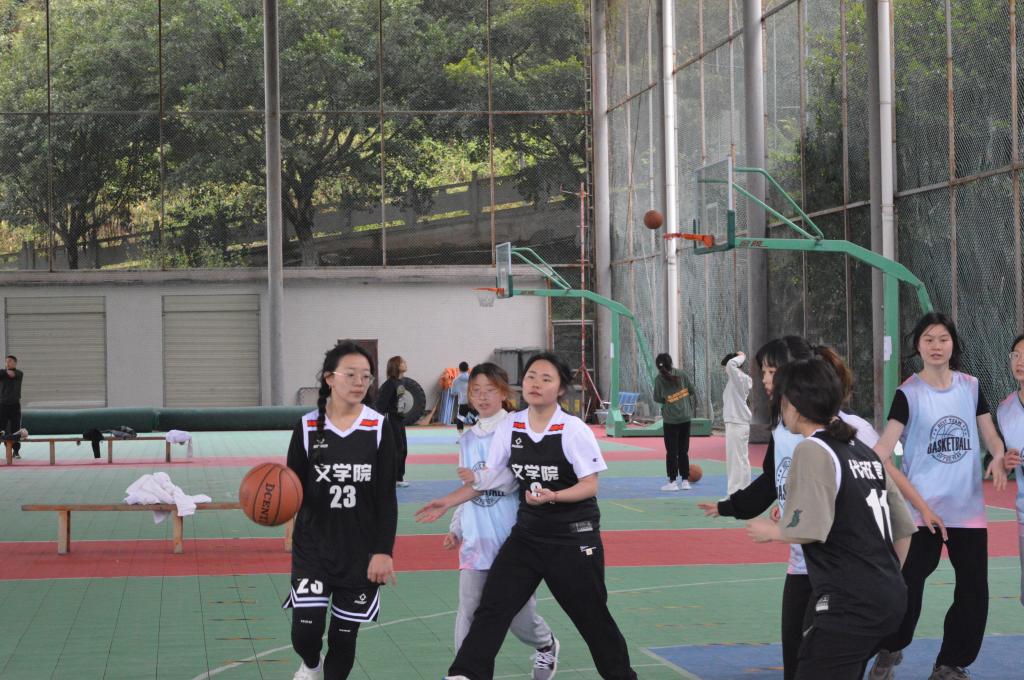 本次比赛男篮队、女篮队同时开场。比赛中,球员们精彩的抢断、默契的传球、精准的投篮让同学们大饱眼福,为之呐喊,加油声响彻球场。场上,队员们挥洒汗水,配合默契,争分夺秒地找准时机进球,紧张的气氛弥漫在篮球场上。场下,同学们为各自的队伍加油助威。比赛过半,双方队伍奋起追赶,男篮队双方队伍比分接近持平,双方实力不分上下。与此同时,女篮汉文队略胜一筹,汉教队调整战略,奋起直追。比赛在这惊心动魄的氛围下进行着,裁判哨声响起,比赛结束,汉文队取得最终胜利。
