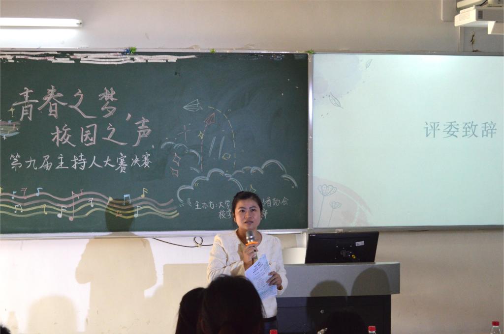 以声传情,以美育人。为进一步丰富我院学子的文化生活,提升个人能力水平,我院于2023年4月27日在博学楼1栋101室顺利举办“青春之梦,校园之声”第九届主持人大赛决赛。团总支书记兼学工办主任张悦老师,2022级辅导员熊维娟老师,2021级辅导员刘林精老师,2020级辅导员张扬老师出席本次决赛。