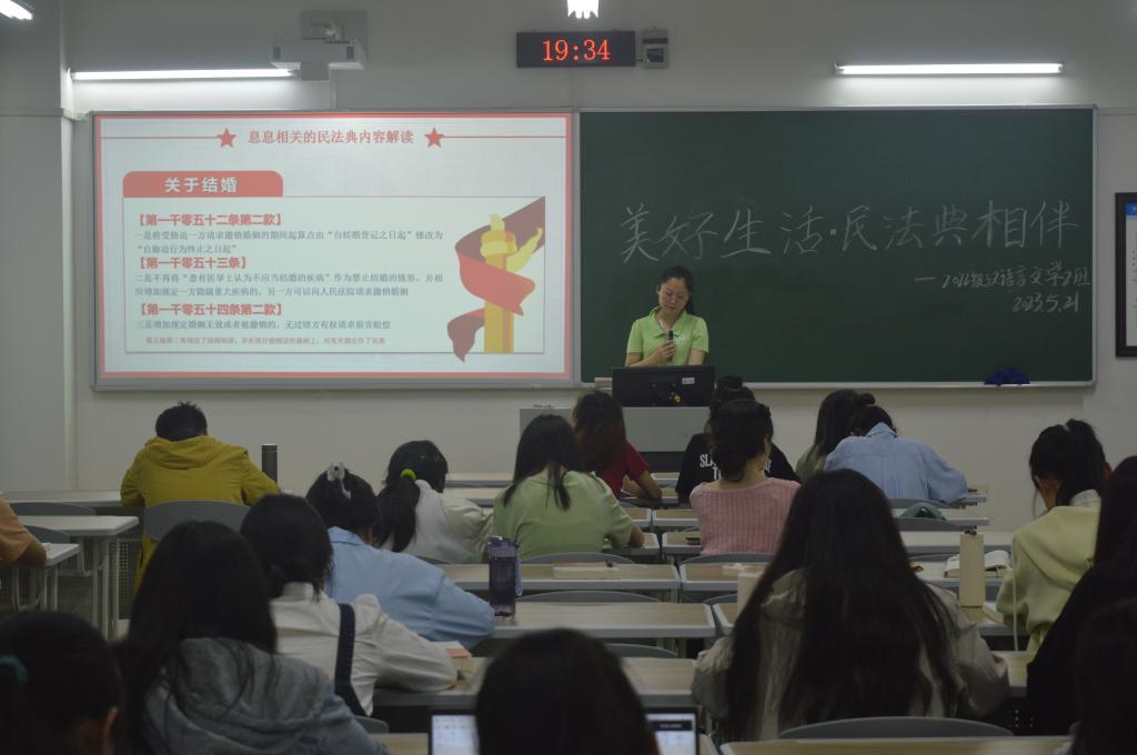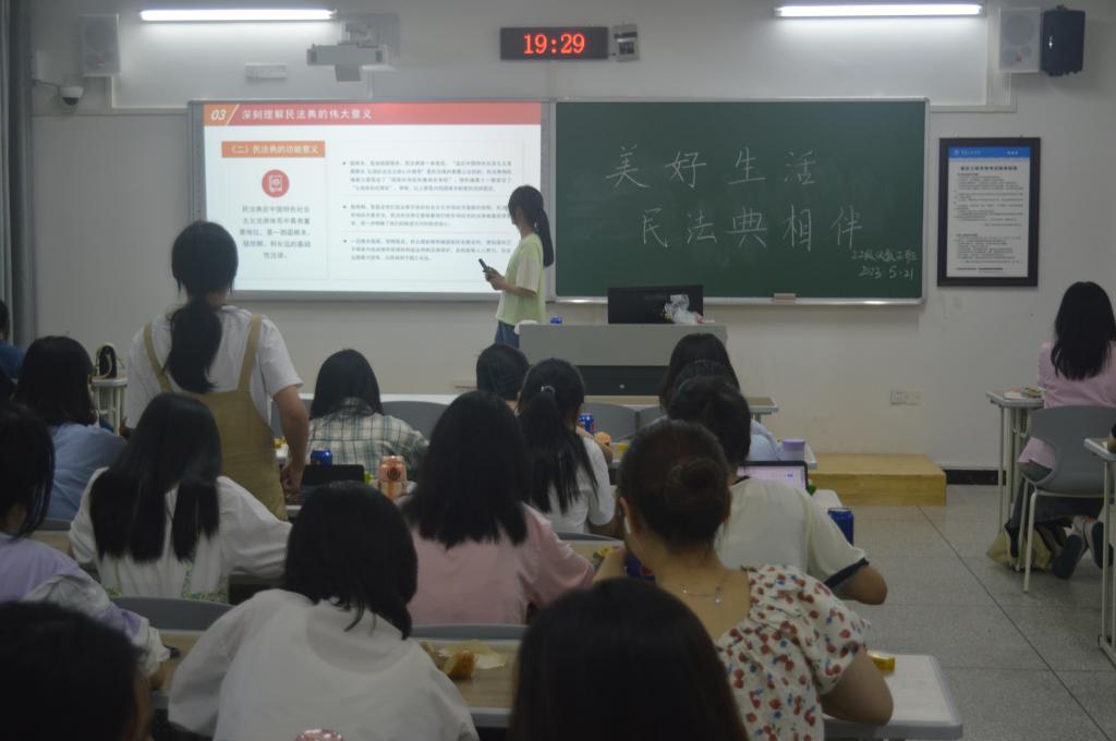 为进一步弘扬法治精神,普及《中华人民共和国民法典》(以下简称《民法典》)知识,增强同学们自我保护意识,我院各年级于5月21日晚分别在博学楼1栋开展“重庆市2023年美好生活·民法典相伴”主题班会。