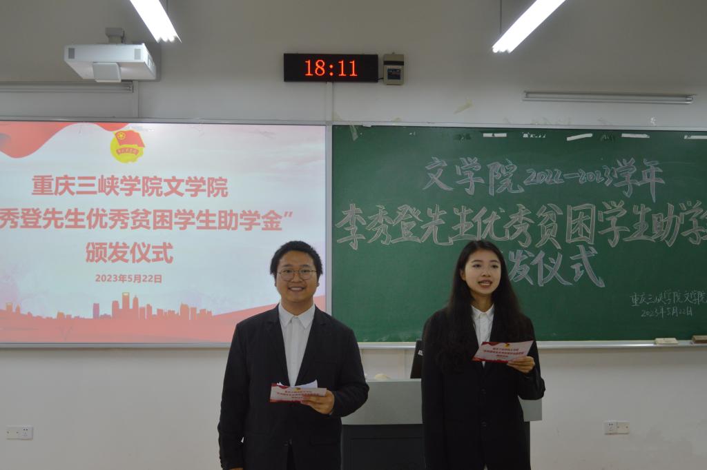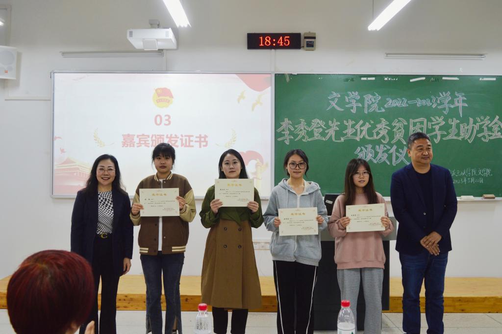 为减轻优秀贫困学子学业经济压力,让同学们知恩感恩,我院于5月22日18点在博学楼2栋304室举行了“李秀登先生优秀贫困学生助学金”颁发仪式。bw必威西汉姆联官网院长李俊、党总支书记唐晓萍、副院长向学春、党总支副书记、副院长马婷、学工办主任兼团总支书记张悦、各年级辅导员以及全体受助学生参加此次活动。