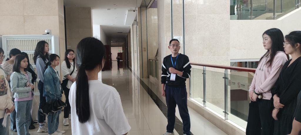 崔滨老师带领同学们参观了图书馆的二、三楼。在三楼展示大厅中,崔老师讲述后续将会在大厅安装信息报幕屏,方便同学们查阅相关信息。在参观借阅室时,崔老师介绍了图书的借阅方式、检索方式,图书借阅方式由传统的笔纸登记借阅转变成由电子信息登记借阅,借阅方式的改变使图书管理更为便捷、智能,落实智能化图书馆这一概念。目前,图书馆还有未开放区域,包括图书古籍书库、特藏书库、个性化学习空间、小型研修室等,这些区域将在不久后投入使用,为同学们提供更多的服务。座谈会中,同学们提出了图书馆设施与开放相关的问题、考研考公等学习问题、宿舍用水用气等生活问题,老师根据自身相关经验为同学们答疑解惑,指明方向,现场气氛融洽和谐。