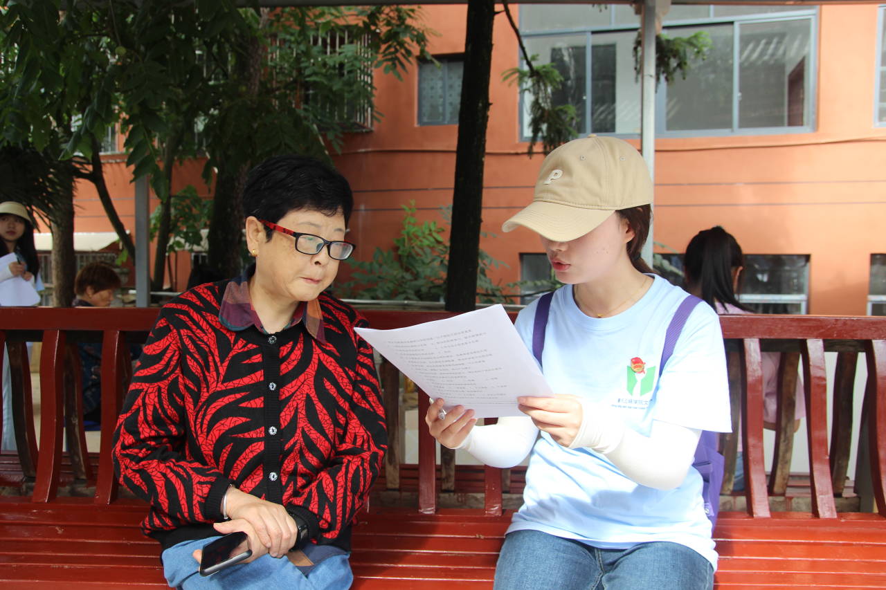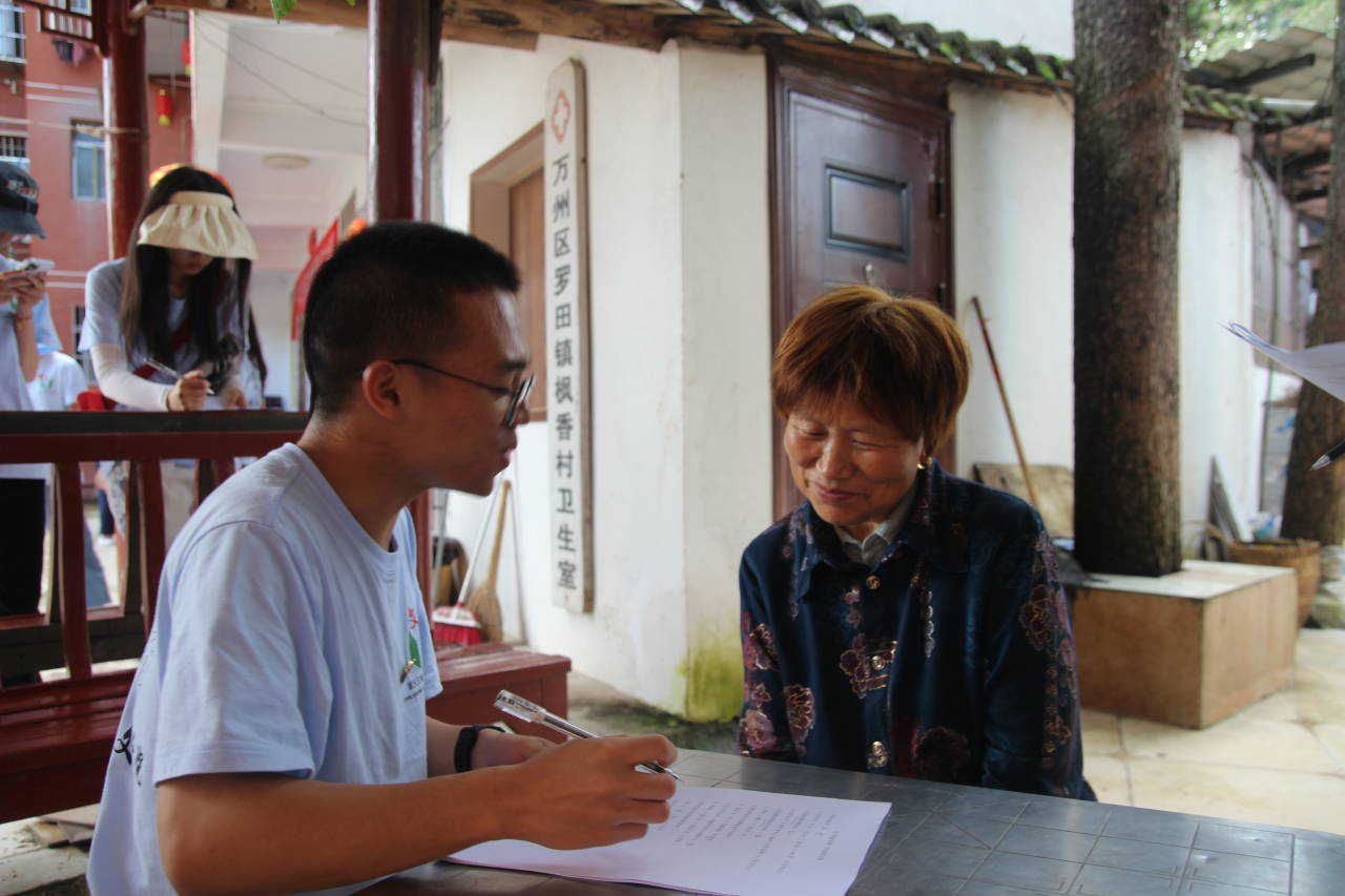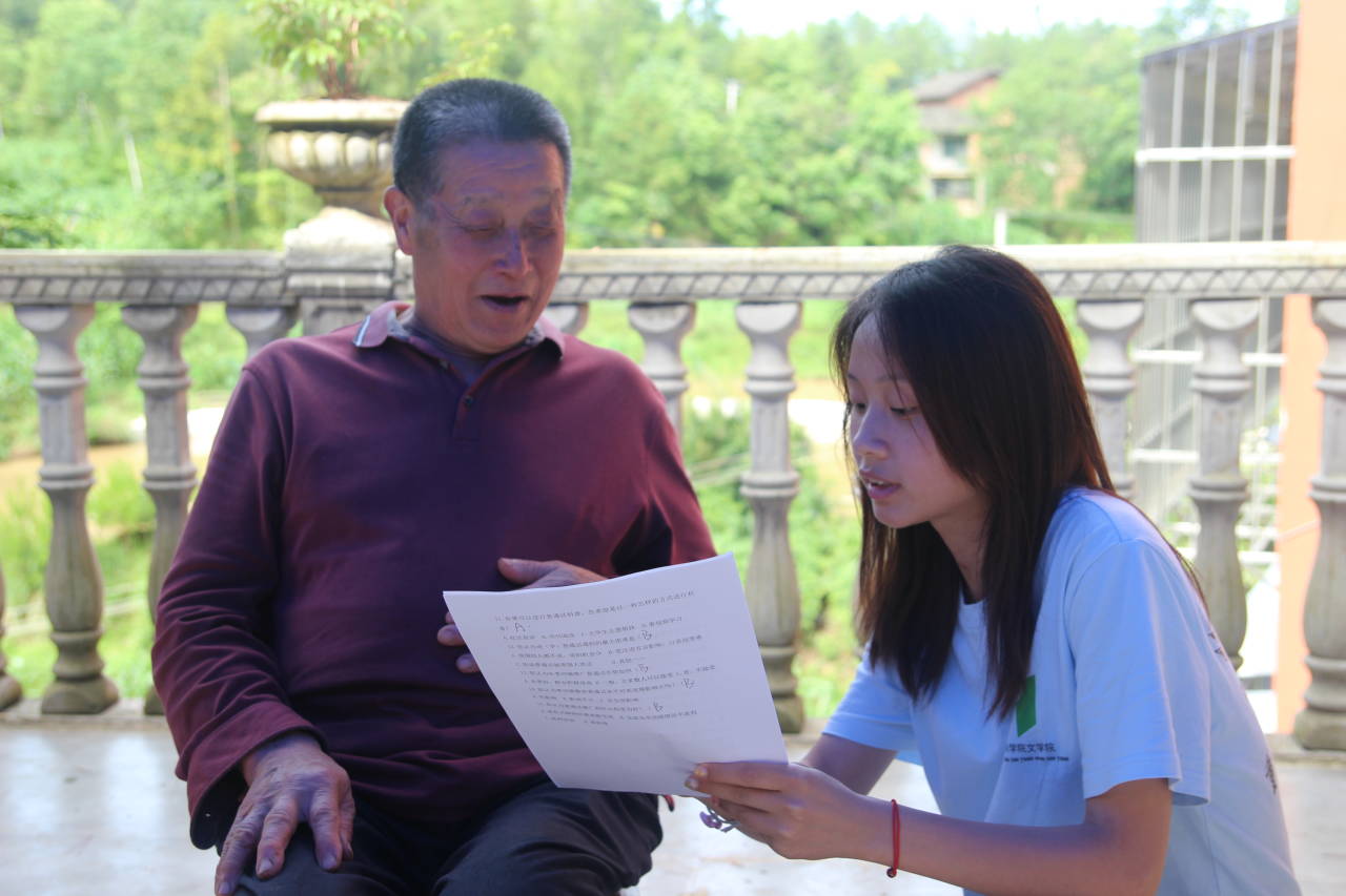 观察团成员与枫香村服务站中心的村民进行初步交流,了解了本村的发展情况。一对一向村民分发问卷,就罗田发展情况、对普通话的了解,普通话的运用程度、对推广活动形式的意见及推动城乡发展的个人建议等问题提问,村民根据实际情况和个人了解做出回答,调研期间气氛融洽和谐。随后,观察团成员向村民介绍了推广普通话的意义,使村民对普通话有了更详细的认识。最后,成员整合问卷调查信息,为更高效地开展普通话推广工作奠定基础。