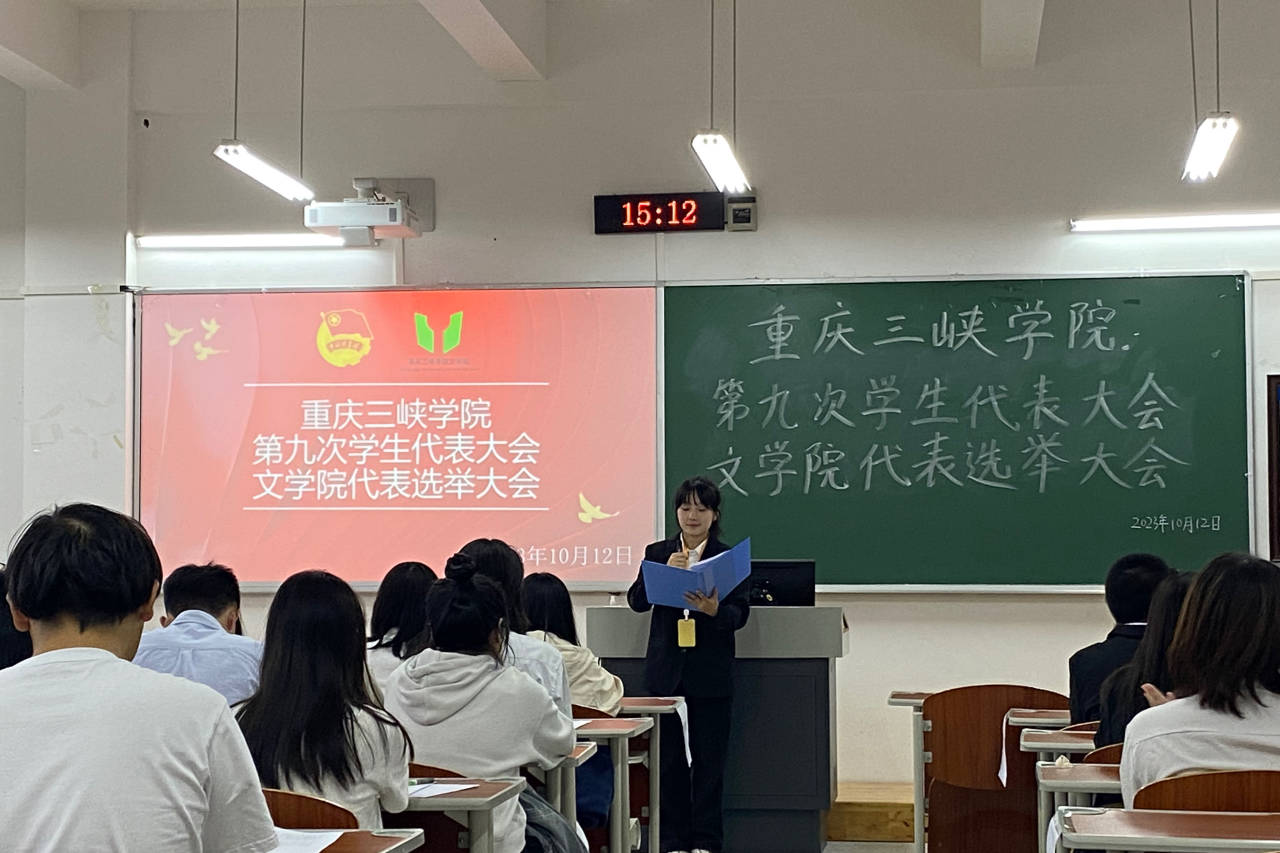 会议第二项,由秘书部负责人彭乙宣读重庆三峡学院第九次学生代表大会bw必威西汉姆联官网代表选举大会办法(草案)。选举内容规定正式代表将从14名代表候选人中选出,选举采用无记名投票方式,全程透明公开,体现了公平、公正的原则。