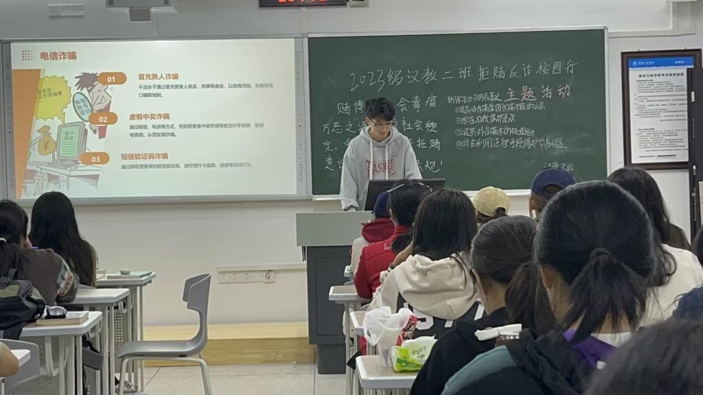 为深入学习贯彻落实习近平总书记对打击治理电信网络新型违法犯罪工作的重要指示批示精神,切实加强学生防范电信网络诈骗的宣传教育工作,有效遏制电信诈骗案件发生,我院各年级于10月15日组织开展了“防范电信诈骗,筑牢安全防线”的主题班会。