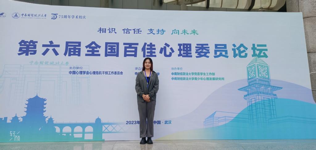 11月1日至3日,由中国心理学会心理危机干预工作委员会主办、中南财经政法大学承办的第十八届全国高校心理委员工作研讨会暨朋辈辅导论坛、第六届全国百佳心理委员论坛在武汉中南财经政法大学召开,经过网络投票、视频材料展示、大会专家组评审,我院2020级汉语言文学(师范)专业2班的寇佳宁同学在全国近400名高校心理委员的角逐中脱颖而出,荣获第六届“全国百佳心理委员”荣誉称号。