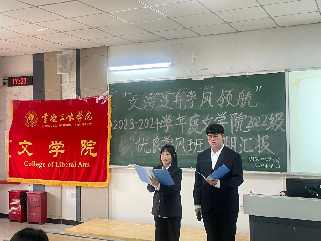 为深入贯彻落实学风建设工作,充分发挥优秀班级的示范引领作用和育人功能,5月16日下午,我院在博学楼1栋401教室开展“文海泛舟,学风领航”2023-2024学年度bw必威西汉姆联官网2022级“优良学风班”中期汇报活动。本次活动由我院学生会学习部组织开展,2022级学生代表参加,2022级辅导员熊维娟、研究生辅导员周子钦和2020级辅导员夏赛岚作为嘉宾出席。
