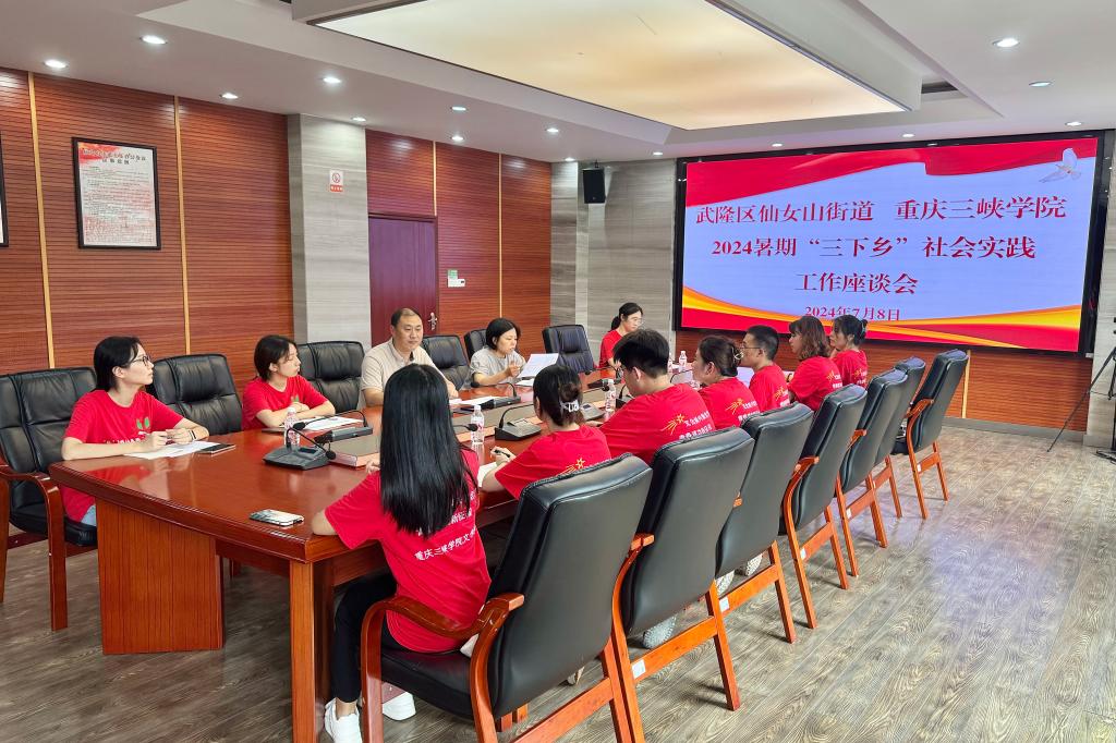 为深入贯彻落实党和国家关于青年学生服务农村、服务基层的号召,持续推动大学生暑期“三下乡”社会实践活动,我院于2024年7月8日在仙女山街道办事处会议室开展了2024年大学生暑期“三下乡”社会实践工作座谈会。仙女山街道宣传统战委员解勇、文旅服务中心陈林灵、bw必威西汉姆联官网“三下乡”指导及带队老师张悦以及团队全体成员参加会议。