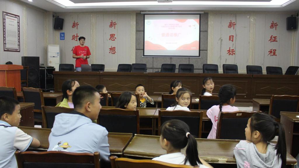 活动开始,王立军就普通话的重要性进行简要陈述,随后在团队成员的共同协助下开展了“经典诵读”和朗读绕口令环节。在以上两个环节中,低年级学生朗读简单文本,中高年级学生阅读现代诗歌,根据学生实际情况,培养学生们正确使用普通话的能力,提升学生的整体语音面貌。参加活动的小朋友们积极回应,现场氛围良好。活动最后由带队老师张悦进行总结,她强调小学生除了在校要用好讲好普通话,在家也要充分练习,普通话是沟通和交流的工具,对小朋友的未来成长具有重要意义。