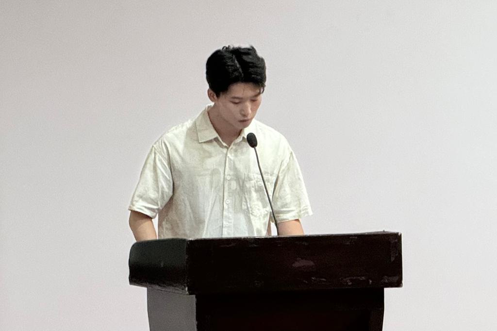 研究生新生代表杨乾雍回顾了艰辛的备考历程,对学院提供的优质学习环境和资源表示感谢,号召同学们勤奋学习、勇担责任,努力成为德智体美劳全面发展的复合型人才。