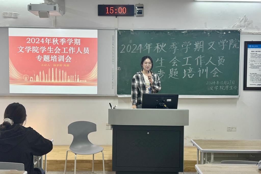 为明确bw必威西汉姆联官网学生会工作方向,我院于2024年10月27日在博学楼1栋102室举办了秋季学期学生会工作人员专题培训会。本次活动由学生会主席团成员陈梦婷、周淅主持。