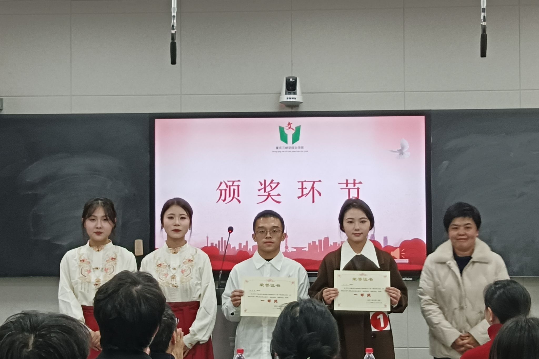 大赛分为即兴演讲、现场授课、评委点评、颁奖仪式四个环节。在即兴演讲环节中,参赛选手们现场抽题,凭借扎实的语言表达能力和应变能力,进行了3分钟的精彩演讲,展现了师范生良好的专业素养和教学潜力。随后的现场授课环节,选手们配合精心准备的课件,进行了8至10分钟的讲课。这一环节不仅考验了选手们的教学设计能力,也是对教学技巧和课堂掌控能力的全面检验。评委点评环节中,刘美老师对选手们的表现进行了专业而细致的点评,她指出了选手们的优点,也提出了宝贵的改进建议,为选手们的教学实践提供了方向。在颁奖仪式上,颁奖嘉宾为获奖选手颁奖,选手们与到场嘉宾及评委合影留念,大赛在一片欢声笑语中圆满结束。