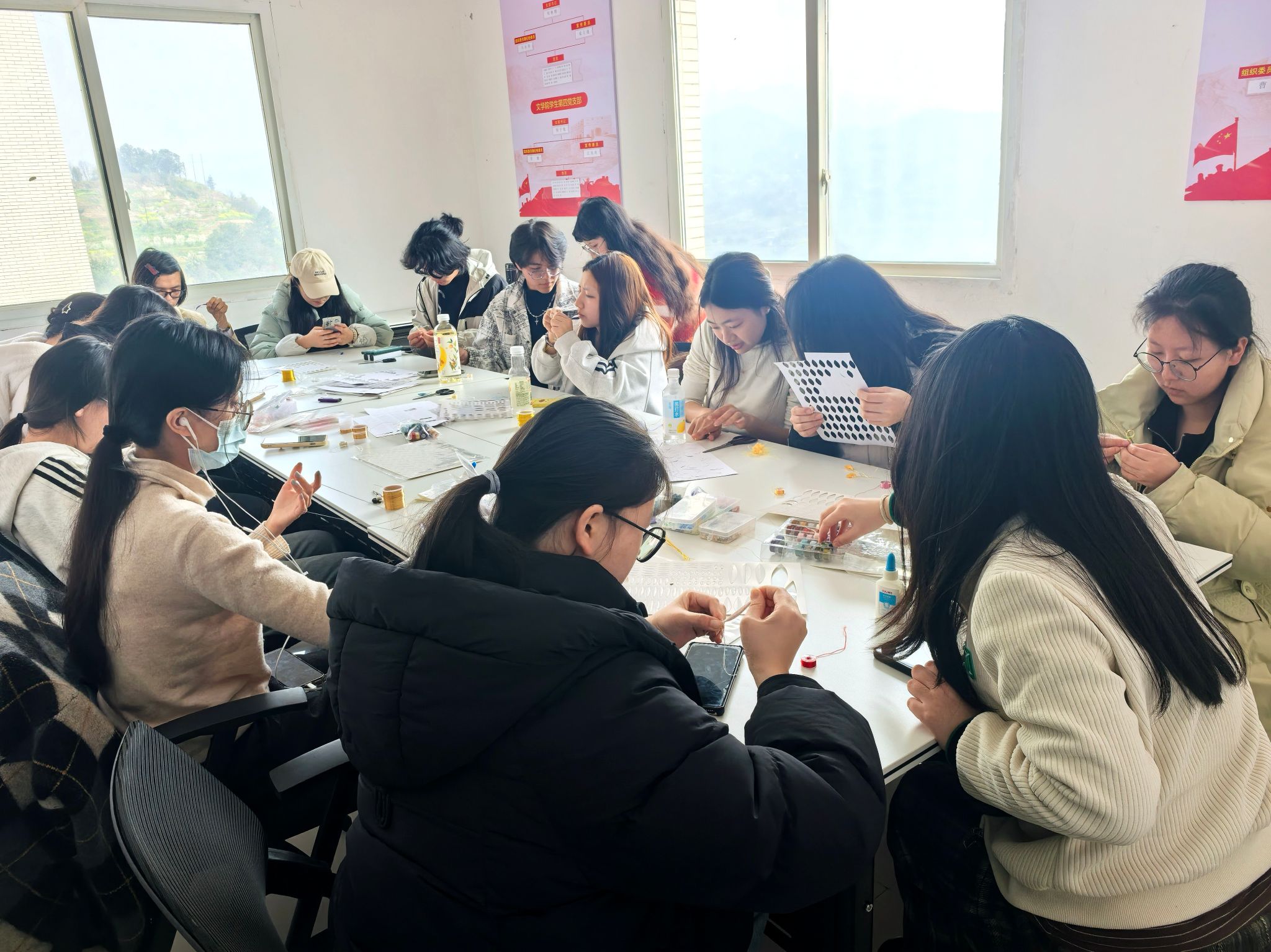 为传承优秀传统文化,丰富学生活动形式,3月23日下午,bw必威西汉姆联官网溯源汉服社于桂花苑4栋419bw必威西汉姆联官网学生党员工作站——星火驿站成功举办“春日绣浮锦,手艺化玲珑”缠花手工活动,众多汉服社成员与传统文化爱好者齐聚一堂,共同沉浸于缠花这一传统非遗技艺的独特魅力之中。