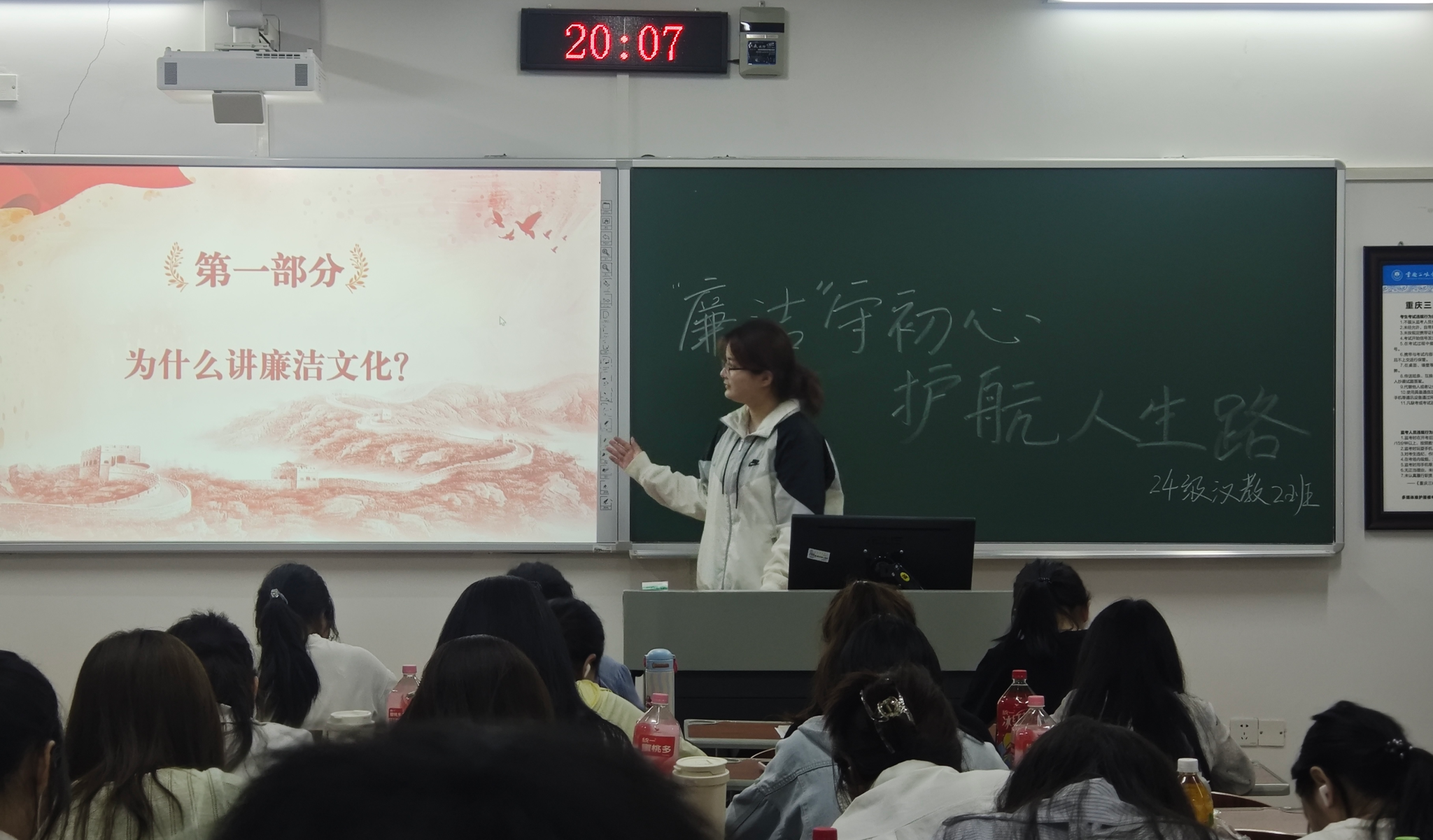 4月20日下午,bw必威西汉姆联官网成功举办了一场以“廉洁守初心,护航人生路”为主题的班会活动。廉洁文化作为中华民族优秀传统美德的重要组成部分,是社会主义核心价值观的重要内容。在当今社会,廉洁不仅仅是对公职人员的要求,更是每一个公民应有的行为准则。对于大学生而言,学习和践行廉洁文化尤为重要。在校园中培养廉洁意识,不仅有助于塑造个人品德,还能为未来的职业生涯和行为规范奠定坚实的思想根基。