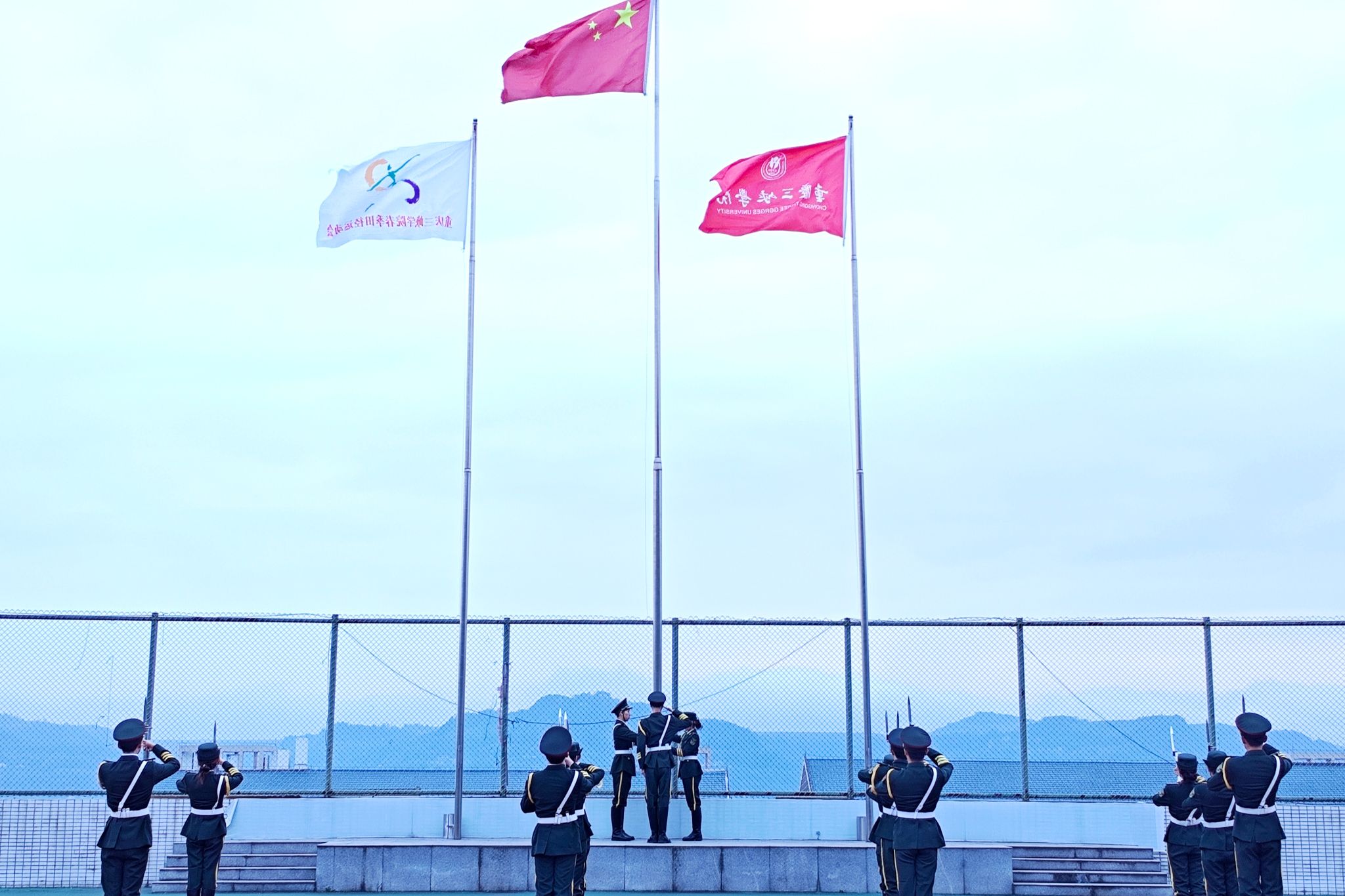 4月21日清晨,bw必威西汉姆联官网在田径运动场举行升旗仪式。7时整,晨光初露,升旗仪式正式拉开帷幕。