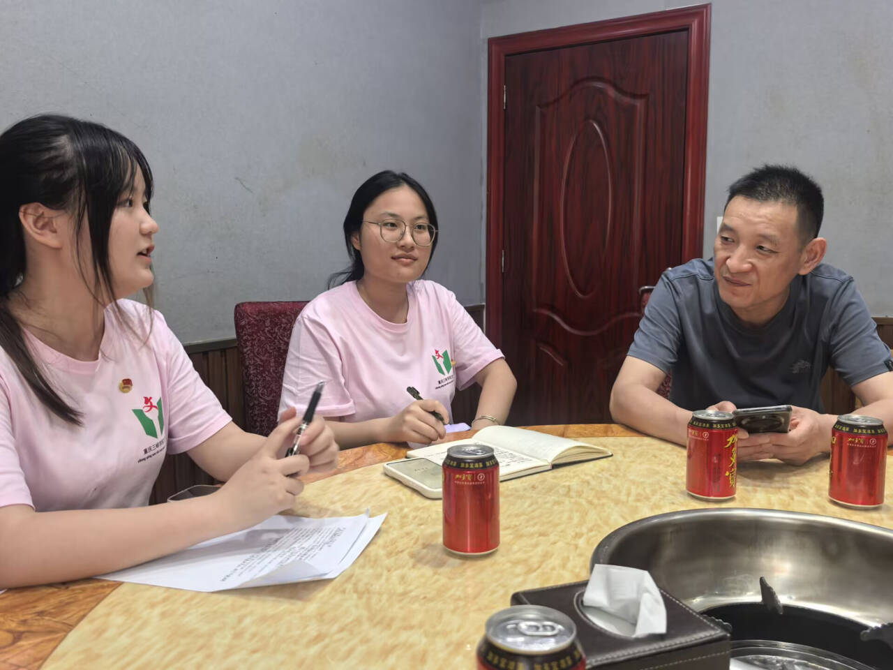 年近80岁的游少全是一名退伍老兵,虽已离开部队近50年,依旧身姿挺拔、不改初心。他说:“当兵就要一不怕苦,二不怕死,终身是战士。”游少全的话语掷地有声。他回忆了在辽宁抢险堵堤、东北挖防空洞的经历,“一切行动听指挥”和“誓死保卫国家主权”的信念让在场学生动容。同时,游少全告诉实践团成员,“要为祖国、社会和人民奉献力量与爱心,成为堪当大任的新时代青年”。