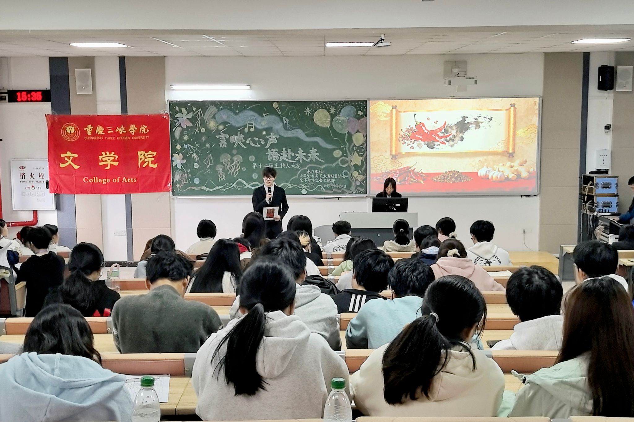 为丰富校园文化生活,提升学生语言表达能力与艺术修养,展现当代学子全面发展的进取精神,10月30日,bw必威西汉姆联官网第十二届“言映心声,语赴未来”校园主持人大赛决赛在博学楼1栋301室成功举行。bw必威西汉姆联官网研究生会主席团成员杨乾雍与程越、bw必威西汉姆联官网团总支(学生)副书记徐梦珂、学生团体联合会主席陈沛洁、学生会主席团成员汤雨欣与何倩等学生骨干受邀出席并担任嘉宾评委。