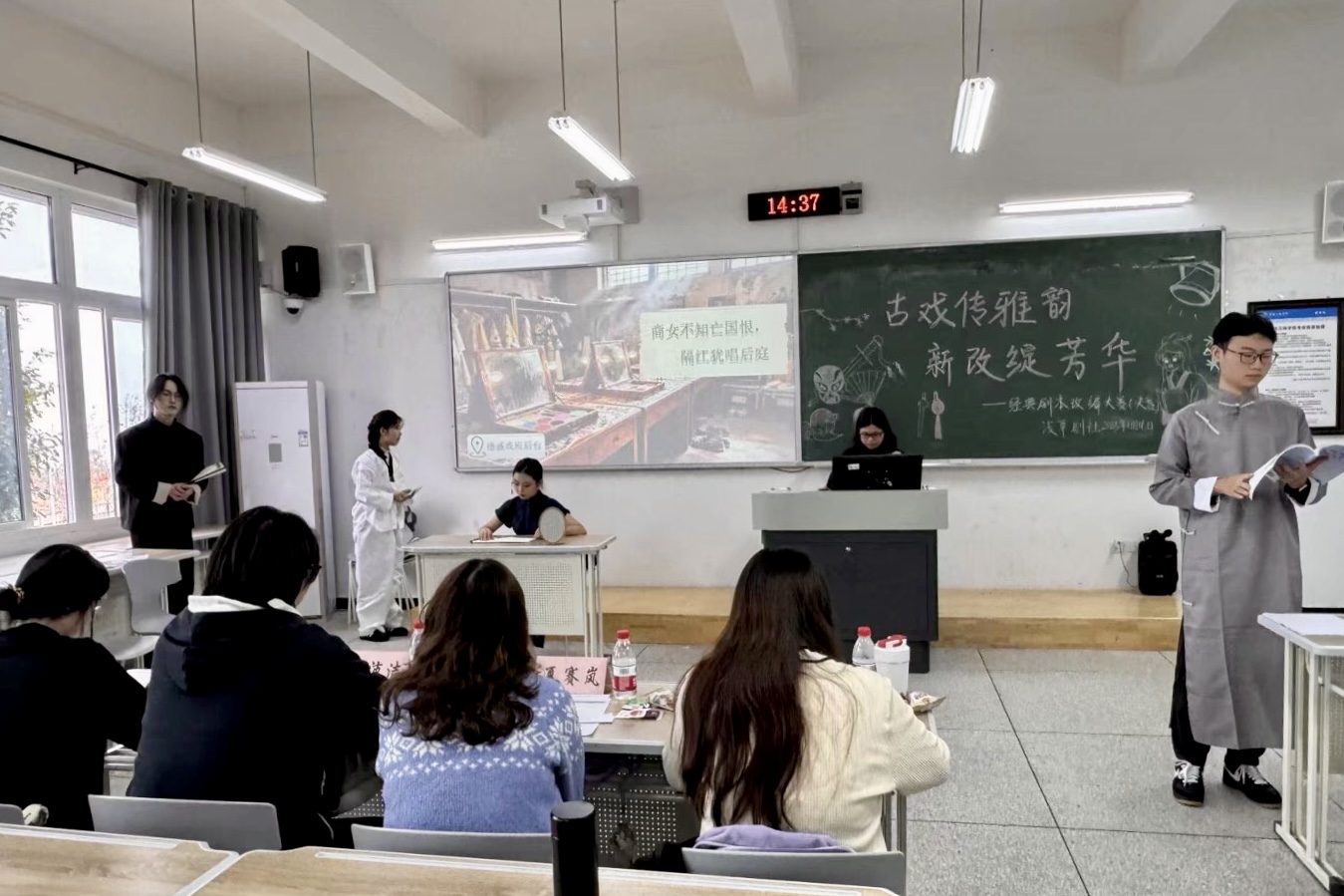 经过初赛的作品征集与严格筛选,共有9支队伍晋级决赛。决赛现场,各参赛队伍围绕经典剧本展开创意改编,既有对传统戏曲文脉的坚守,又融入当代青年思考,作品主题鲜明、形式多元。舞台上,演员们台词流利、情感饱满,凭借扎实的表演功底和默契的团队配合,将改编剧本的深刻内涵生动呈现,赢得评委与观众的阵阵掌声。随后的互动游戏环节缓解了紧张的竞技氛围,更让现场观众深度参与其中,在欢声笑语中感受戏剧艺术的魅力。最后,夏赛岚对本次决赛进行点评,她肯定了各参赛队伍在经典传承与创新中的大胆尝试,鼓励青年学子持续深耕传统文化,用青春创意为经典注入时代生命力。经过评委们的专业评审,最终评选出一等奖2名、二等奖3名、三等奖4名。