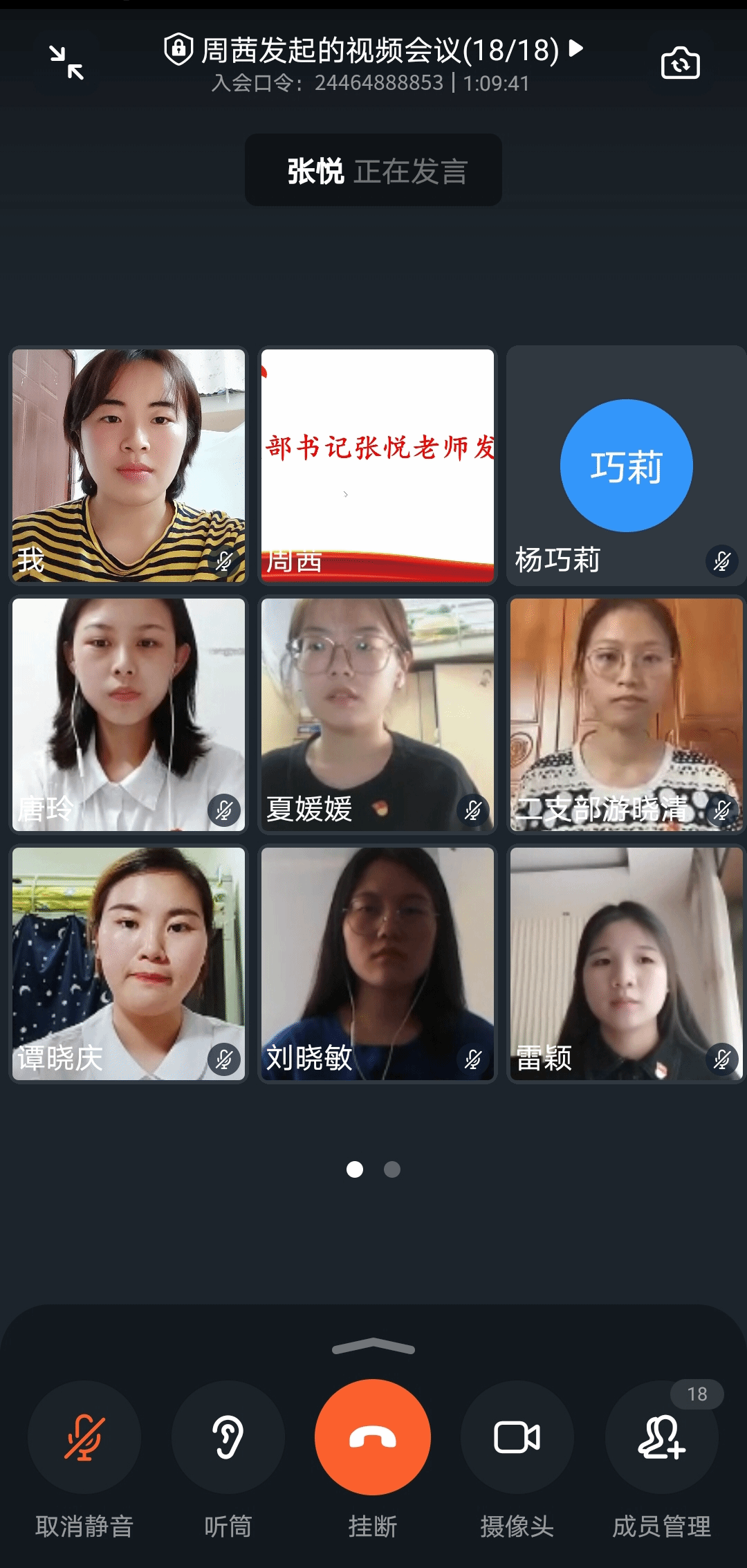 2020年6月5日,我院党总支学生党支部在线上召开党员大会,讨论预备党员转正并进行民主评议,会议由周茜同志主持。我院学生第一党支部书记阮碧波、学生第二党支部书记张悦、全体正式党员、预备党员及发展对象参与此次会议。