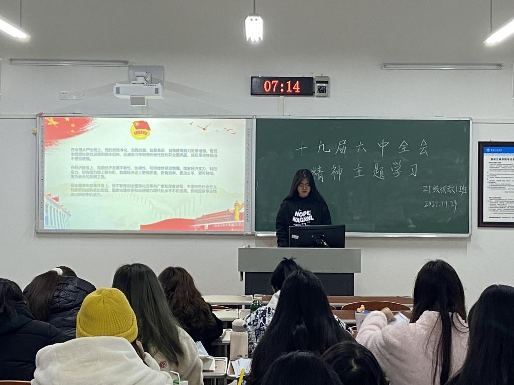 为帮助学生深入了解十九届六中全会精神,进一步提升学生思想政治素养,我院各班于11月26日至12月3日期间召开了十九届六中全会精神学习主题班会。