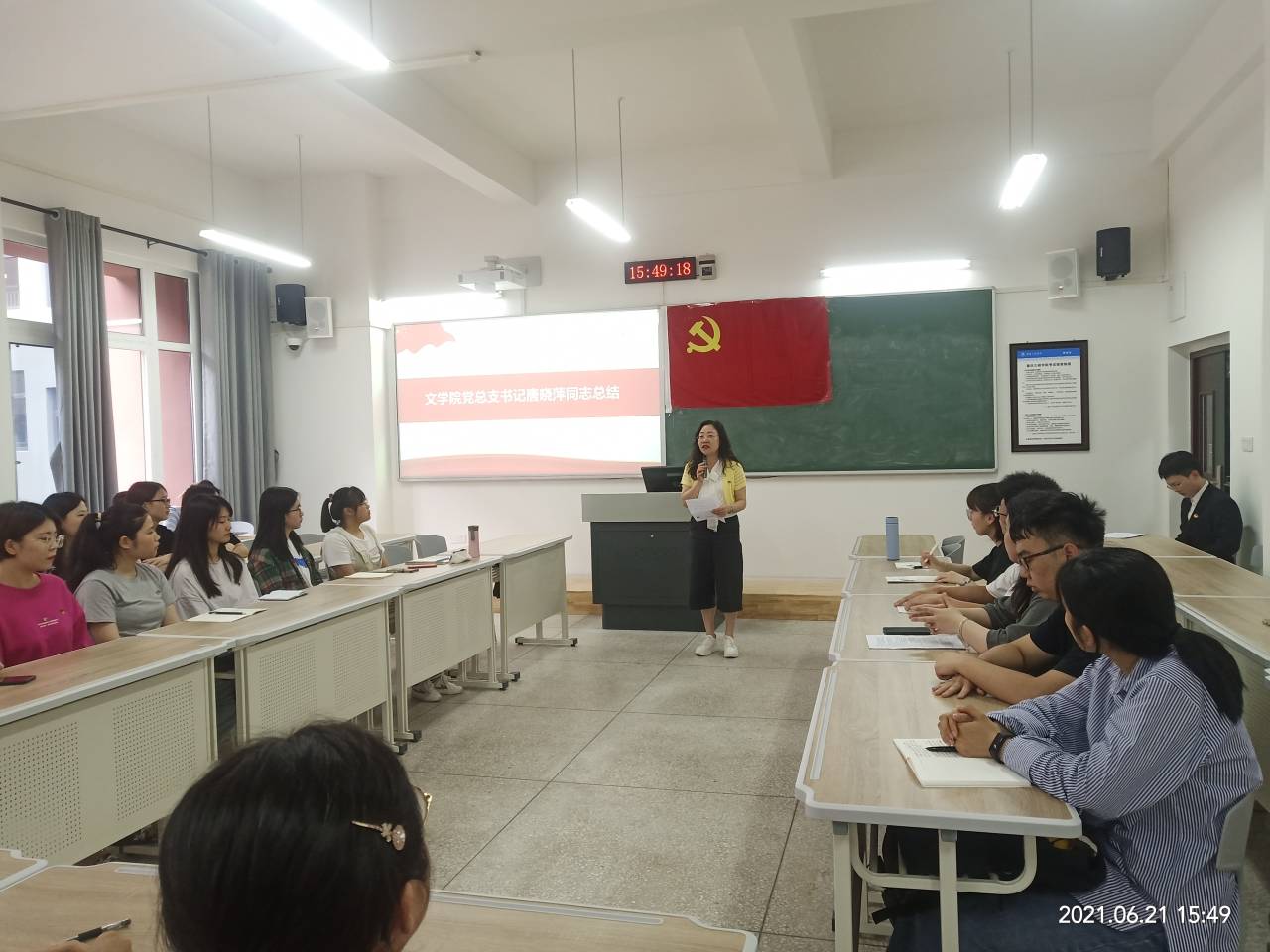 为迎接共产党百年华诞,进一步增强我院学生党员对党史认识和理解,2021年6月21日下午,我院于博学楼1栋306开展党史学习教育主题党日活动,我院党总支书记唐晓萍、党总支副书记姜希、学生第一党支部书记王陈超、学生第二党支部书记张悦参会。