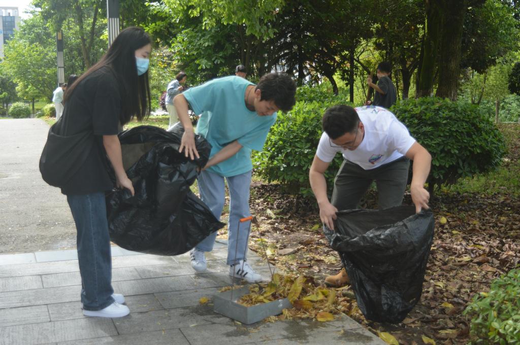 活动伊始,刘博文同志介绍了活动目的与具体分工,同志们根据明辨楼地形划分清理区域后,积极参与落叶清扫、杂物清除、垃圾清理等工作,在劳动中践行新时代大学生的责任与担当,在实践中体验劳动精神、感悟劳动之美。