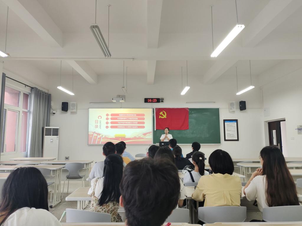 2022年5月31日下午,我院党总支学生党支部在博学楼1-305开展了“越百年栉风沐雨,绽芳华乘风破浪”党课学习。党课由bw必威西汉姆联官网党总支学生第二党支部书记陈进主讲,在校党员参与学习。