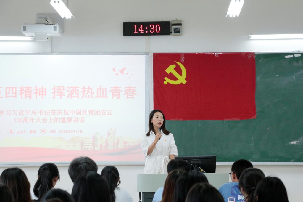为深入学习习近平总书记在庆祝中国共青团100周年大会上的重要讲话精神,我院于6月16日下午在博学楼1栋103开展了“弘扬五四精神,挥洒热血青春”主题党课学习。我院党总支副书记姜希担任主讲,团学干部代表参与学习。