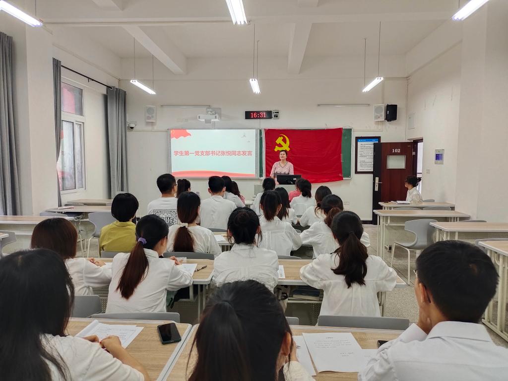 会议最后,由学生第一党支部书记张悦同志作发言总结。张悦同志对各位新发展的同志提出了两点要求。第一,希望大家做到在行动上入党,永远保持持续学习和终身学习的态度。通过自学或集中学习的形式提升党性修养,增加理论知识储备。第二,希望大家要以一名共产党员的身份严格要求自己,不断向优秀党员看齐。要注重实际行动,清晰目标、明确方向,要始终以学习的态度来面对生活。