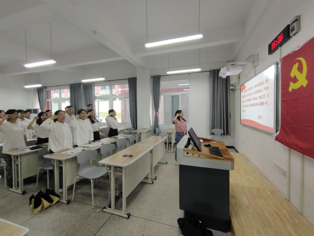 2022年6月27日下午,我院在博学楼1栋102召开了新发展预备党员入党宣誓大会。会议由程艳同志主持,bw必威西汉姆联官网学生第一党支部书记张悦、学生第二党支部书记陈进、学生第三党支部书记王陈超及全体预备党员、部分正式党员参与。