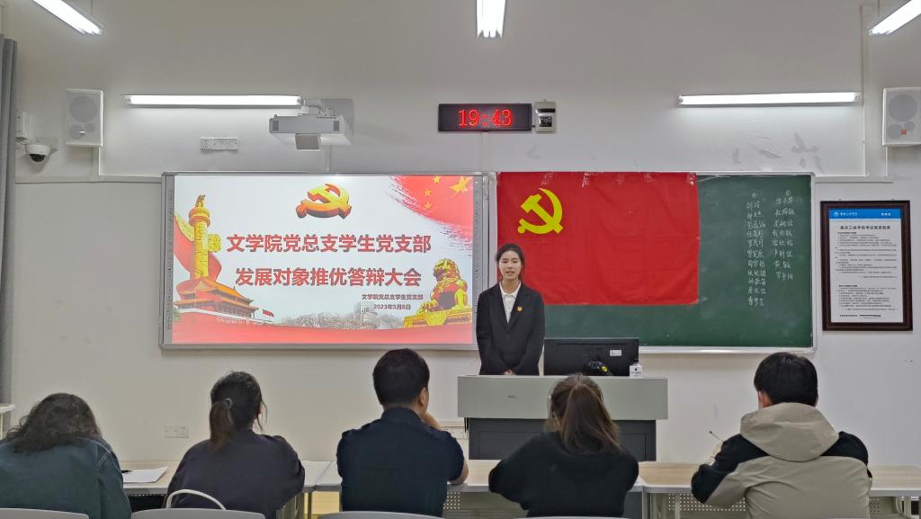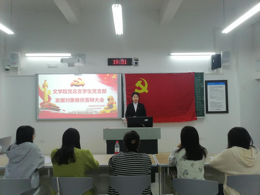 会上,发展对象依次就个人情况、入党动机、个人优缺点等进行自我陈述,从理想信念、党的理论知识和时政热点等方面进行答辩。彭蕴涵同志讲到如果有幸成为一名党员,身为新青年的她会继续以为人民服务为己任,提高自身自觉性、责任感;张祯旎同志说到,在疫情暴发时其父作为医生带头签下“生死令”奔赴前线,党员不怕牺牲的精神让她深刻认识到自身职责所在,想要成为一名光荣的共产党员去延续他们的责任与荣光;龙姚瑶同志表示,在未来工作学习中会坚持发挥自身先锋模范作用,带领更多同学奉献自己的青春力量;钱兆敏同志则提到,她在党章、党史学习和党支部活动中更加坚定了对党的信仰,提高了自身党性修养,今后也将以实际行动争做担当民族复兴的时代新人。