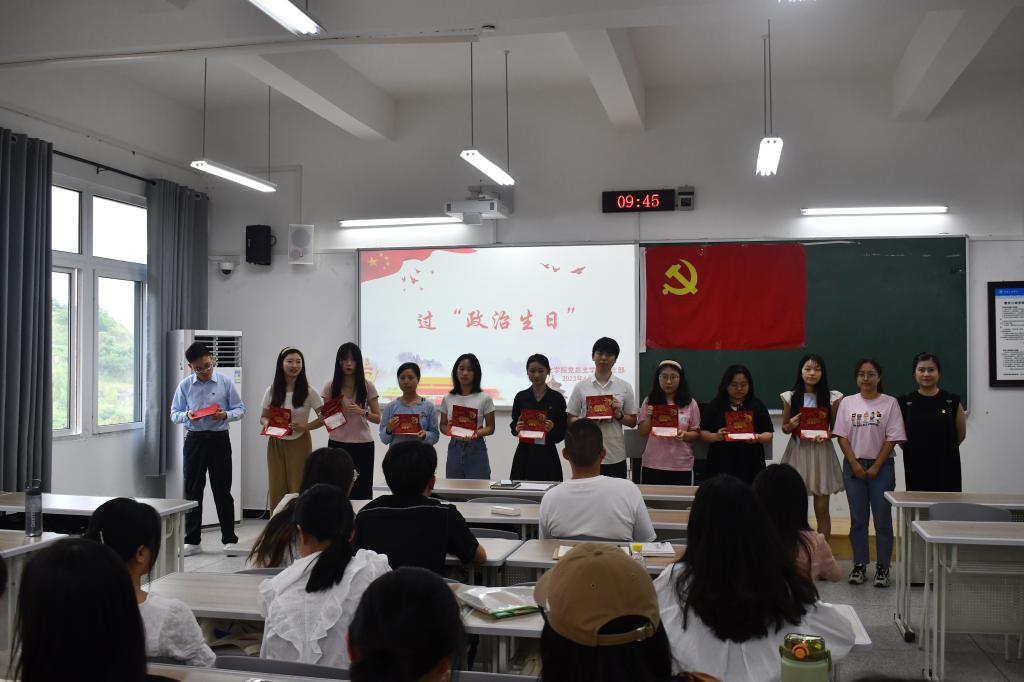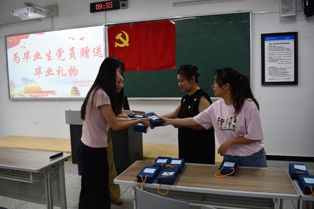 为持续开展学习贯彻习近平新时代中国特色社会主义思想主题教育,增强党员同志的身份意识,我院党总支学生党支部于2023年6月15日在博学楼2栋104室为党员过“政治生日”,为毕业生党员派送毕业纪念品。