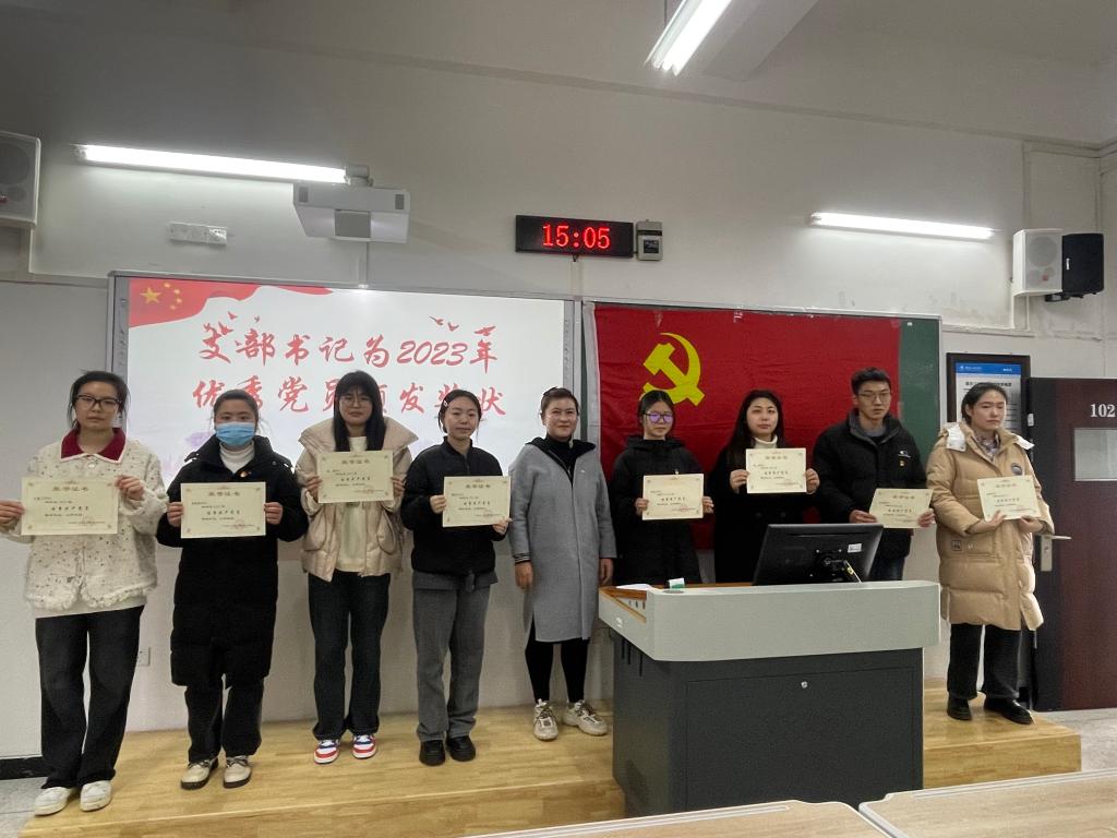 首先,党支部书记张悦为2023年优秀党员颁发奖状,强调了要以榜样为“旗帜”,在生活工作中展现忠诚和奋斗;以榜样为“标尺”,用脚踏实地丈量实干和担当;要以榜样为“明镜”,学习精神和品质以此弥补不足之处,并鼓励各位同志要向优秀党员同志看齐。