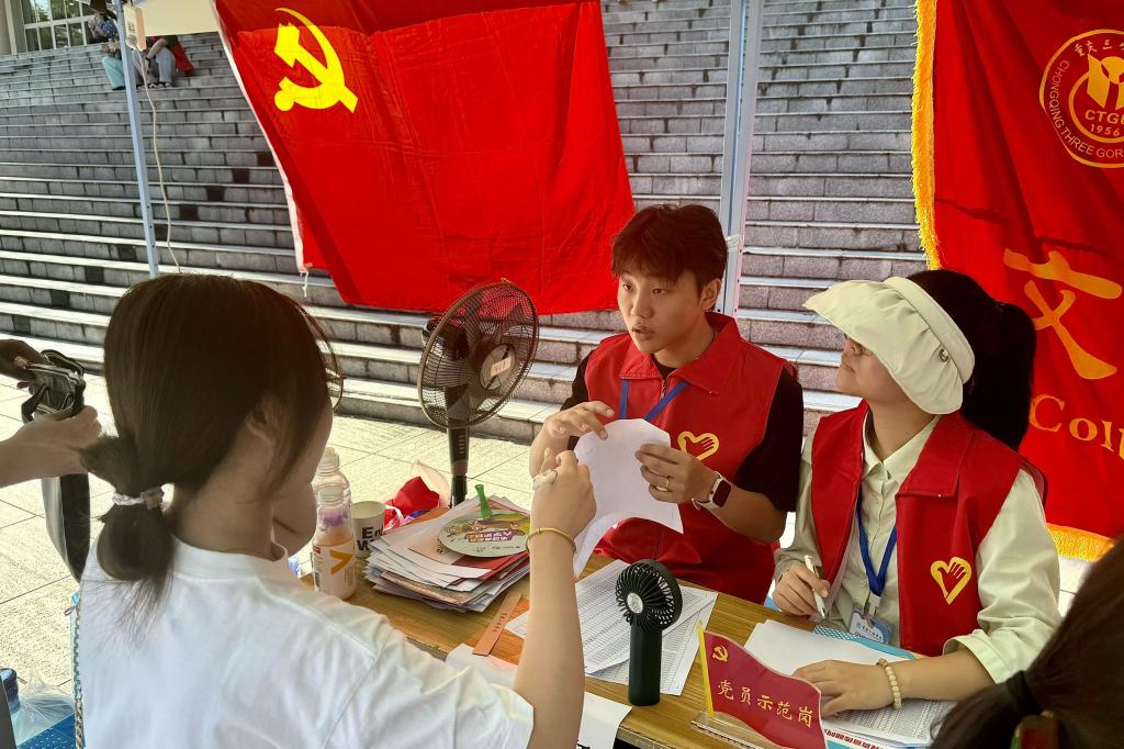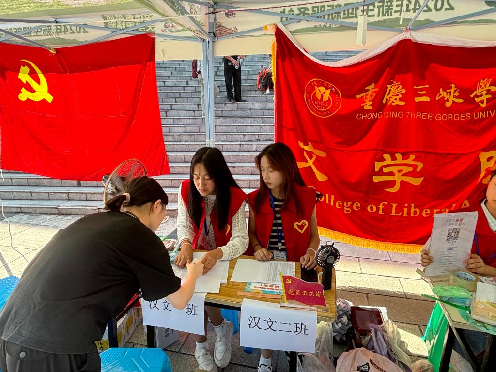 党员志愿者们身着统一的红色马甲,佩戴党员徽章,开展迎新工作。进入校门、报到注册、办理入住,志愿者们各司其职地帮助各位新生,耐心解答新同学的各方面问题。迎新过程中,处处彰显着党组织对新生的关爱,虽高温难耐,但志愿者们始终保持着高度的热情和责任感,发挥了党员的先锋模范作用。