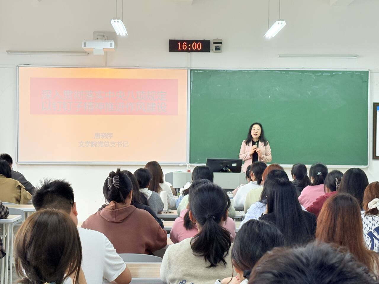 党课伊始,唐晓萍以“党的作风就是党的形象”为切入点,回顾了中央八项规定精神的起源。她提到,自2012年12月4日中央八项规定实施以来,全党以钉钉子精神扎实推进作风建设,从整治“舌尖上的腐败”“会所中的歪风”到纠治形式主义官僚主义,党风政风焕然一新。她强调,中央八项规定不是作风建设的终点,而是新时代改进党风政风的起点。作为新时代青年,必须深刻认识作风建设永远在路上的政治要求。